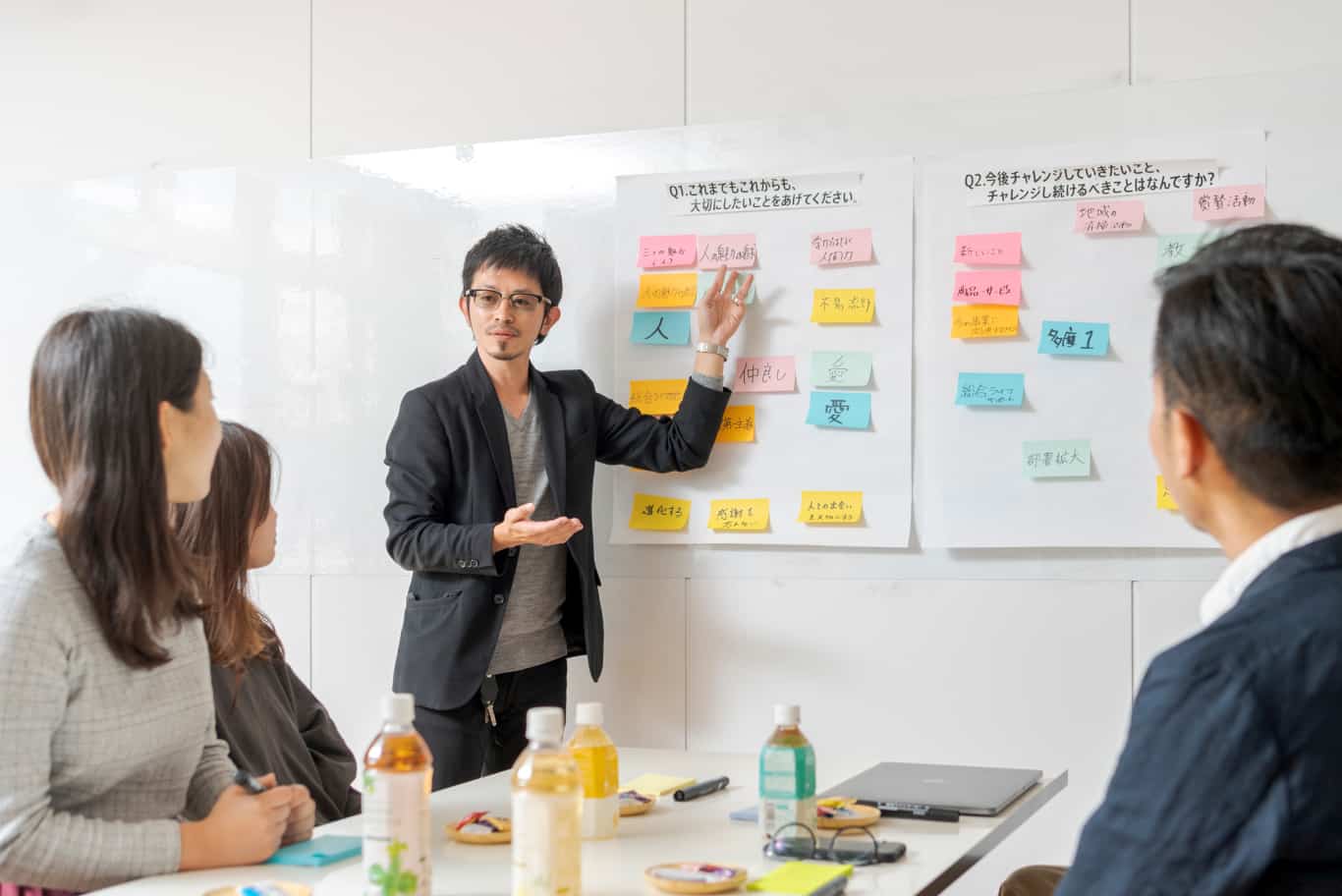 経営者とのヒアリングや幹部とのワーク、社員へのアンケートを通して、多くの素材を集めます。それをもとに現状と理想像の把握を行い、これからどうあるべきかを分析します。